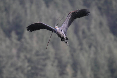 This small heronry has been receiving attention lately from the male's providing branches to fortify their nests.